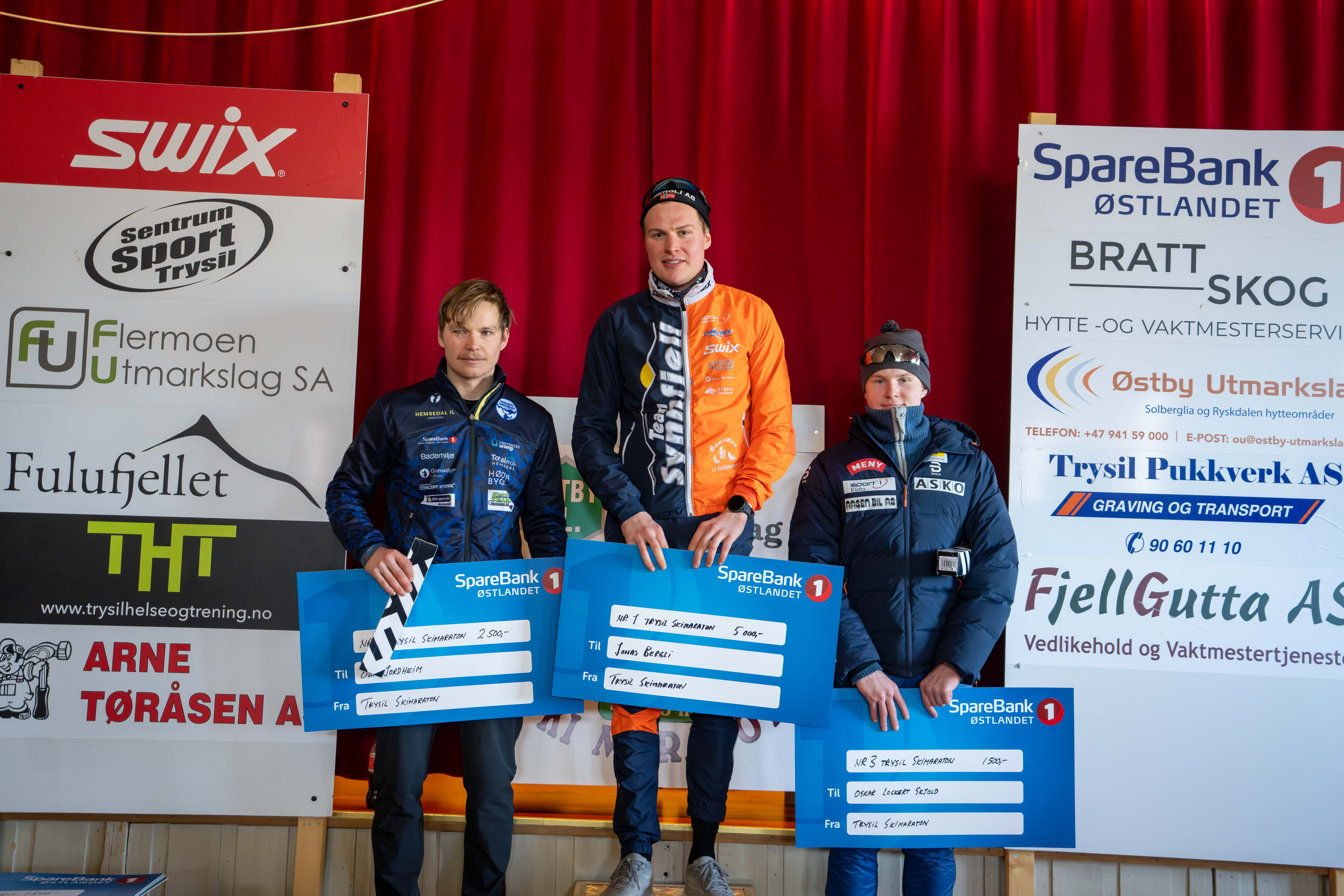 Pallen herrer: Nr. 1 Jonas Bergli, nr. 2 Ola Jordheim, nr. 3 Oskar Lockert Skjold. Foto @trysilcom